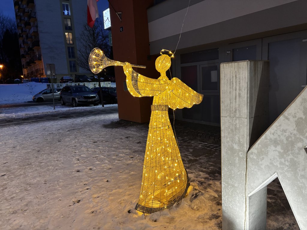 Dekorace je rozebíratelná, což výrazně usnadňuje dopravu a uskladnění. Pronajímaný anděl je repasovaný (není nový) – drobné známky použití však nijak nesnižují jeho vizuální působivost a jsou zohledněny v ceně pronájmu.