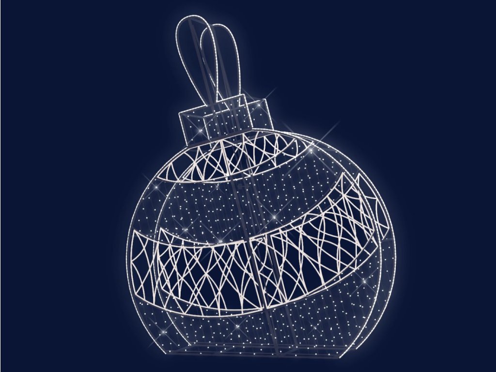Tato nová verze oblíbené 3D vánoční koule přináší osvědčený design s jemně upravenými detaily. Je navržena jako dominantní světelná dekorace pro venkovní použití, která zaujme na první pohled – ve dne i po setmění.