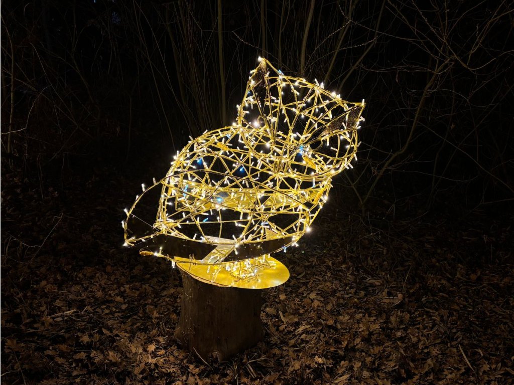 Působivá světelná instalace ve tvaru sovy, která zaujme a dotvoří atmosféru každého místa. přitáhne pozornost a vytvoří nezapomenutelnou atmosféru. Sova má kovový rám, který je opleten světelným řetězem, doplněný je kovovými plíšky, které ji dávají zajímavý vzhled i za denního světla.
