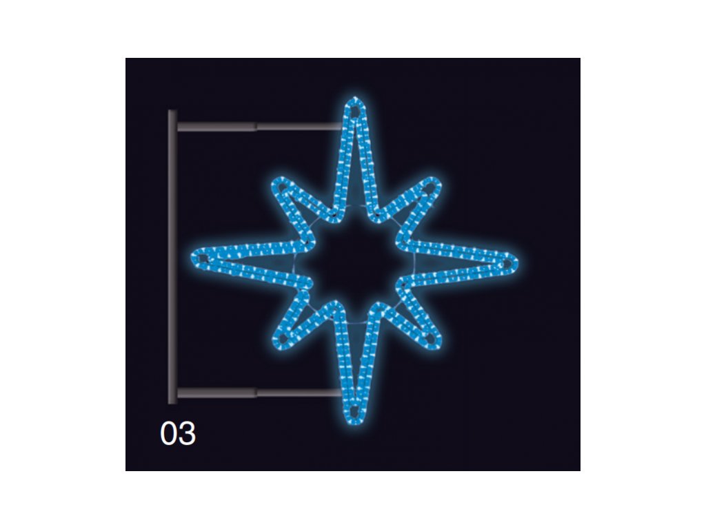 Světelný motiv na sloupy VO - HVĚZDICE s konzolí 1,2x1,2m modrá