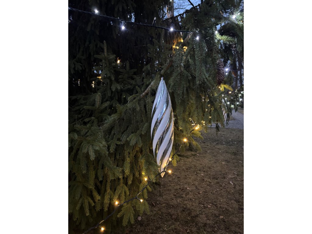 Vánoční šiška velká stříbrno-bílá 65cm