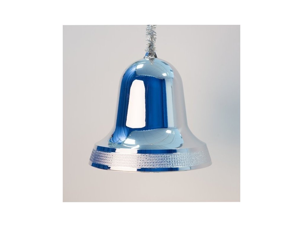 Plastová ozdoba ve tvaru zvonku. Plastové ozdoby jsou odolné vůči mechanickému zacházení například pád ze stromu.